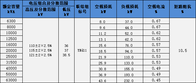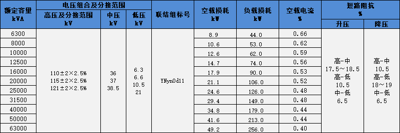 110kV級(jí) 11型三相雙繞組無勵(lì)磁調(diào)壓電力變壓器